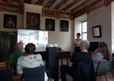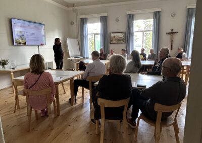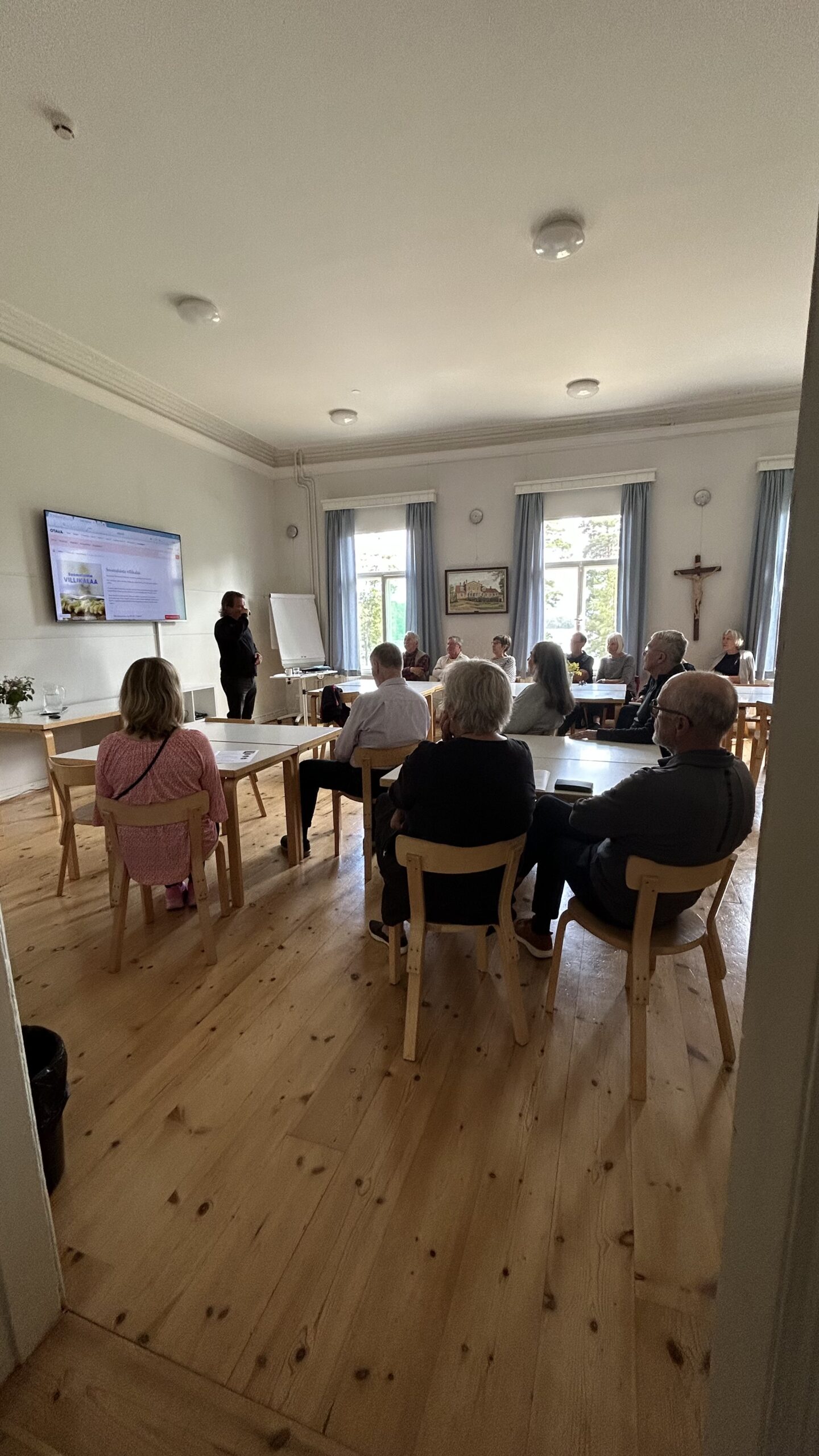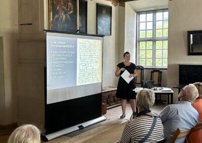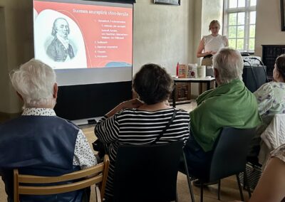 Ruoka kiinnostaa aina ja muutaman lisätuolin kanssa saimme juhlasalin täyteen. Louhisaaren juhlasalissa on painorajoitus, koska kyseessä on vanha kohde ja vaurioita on vältettävä viimeiseen asti. Luennon lopuksi yleisöllä oli mahdollisuus esittää Tiina Herolle kysymyksiä.