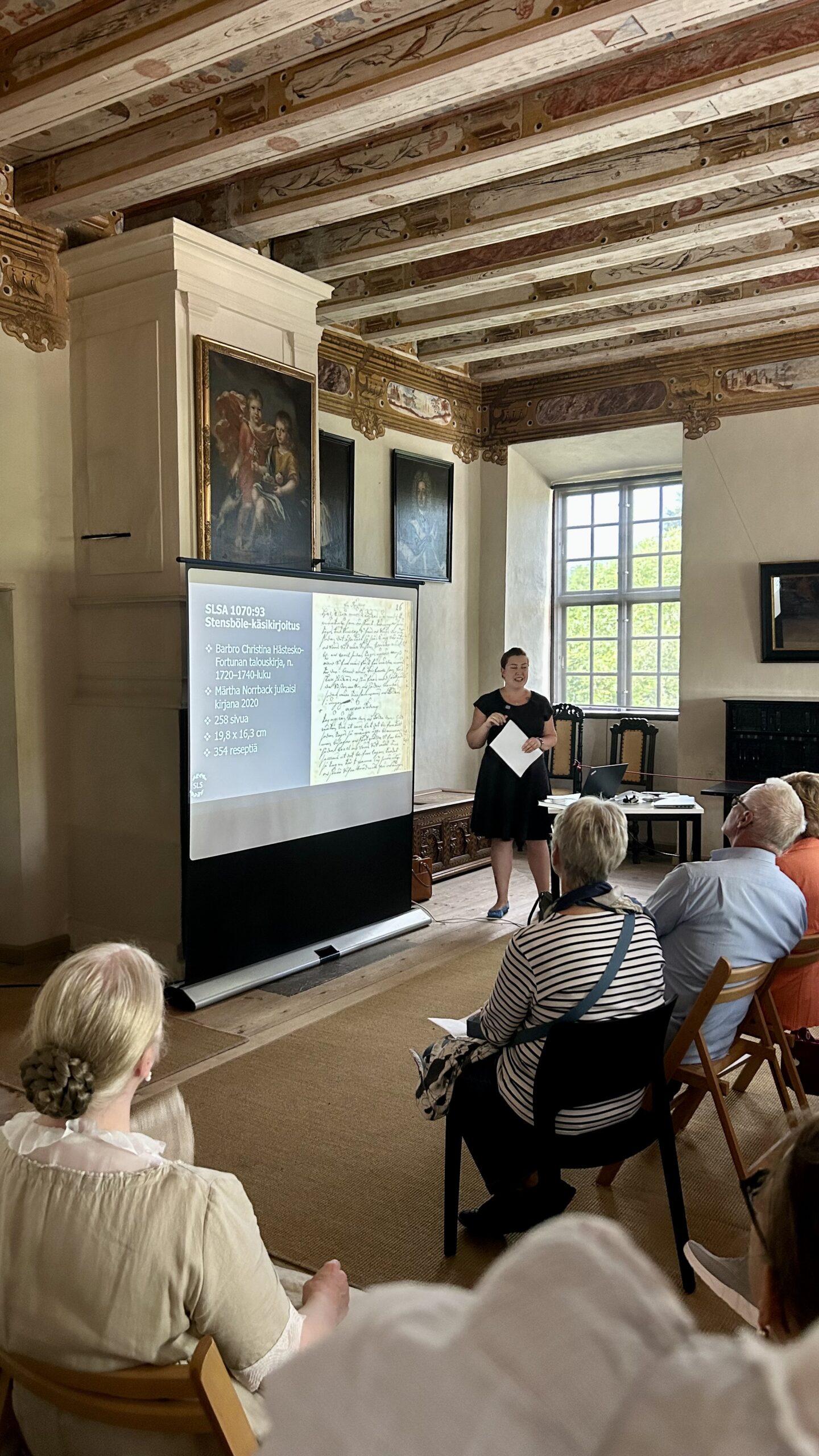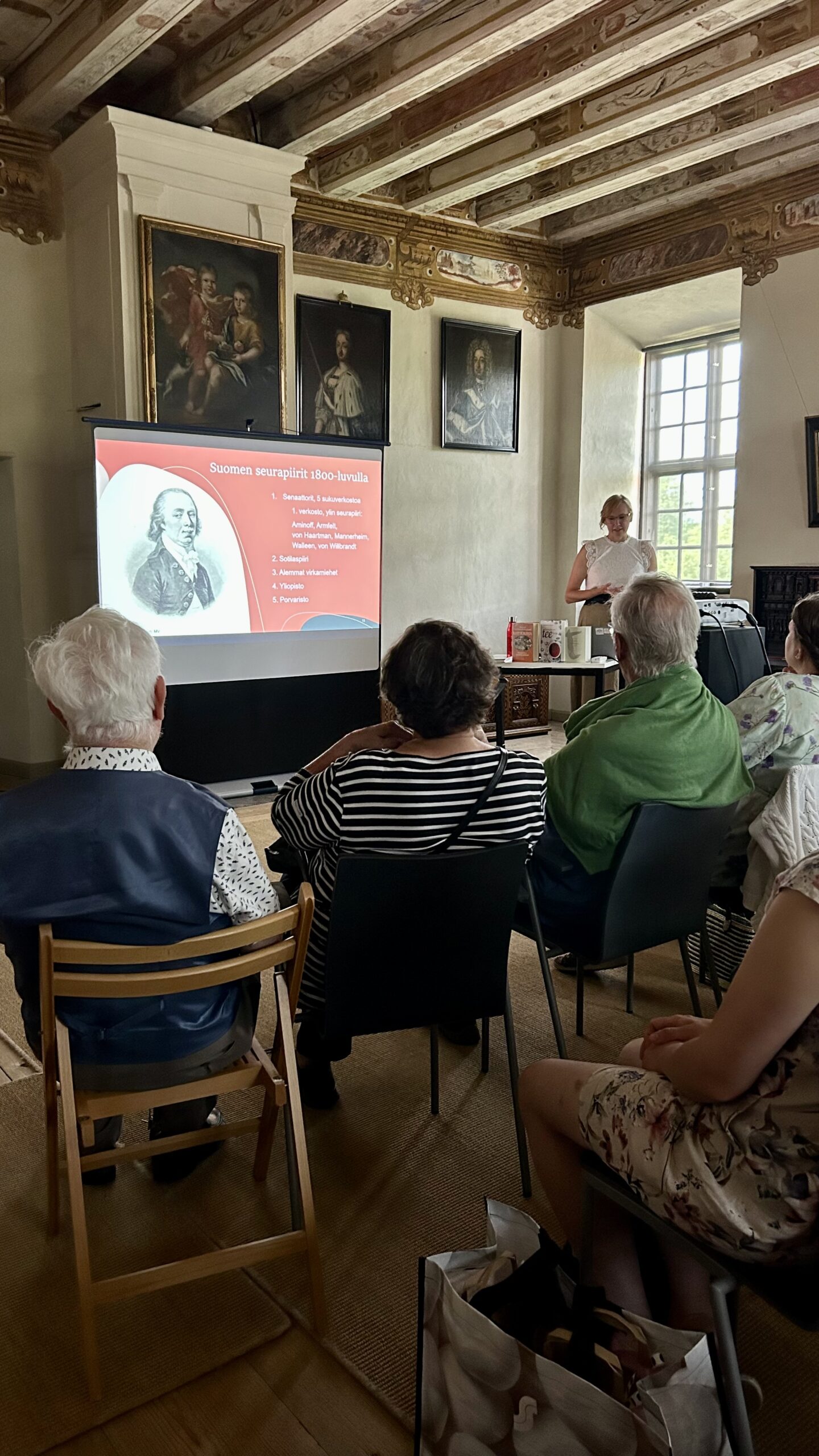 Toisen päivän ensimmäisenä luentona Louhisaaren kartanolinnan juhlasalissa kuultiin Tiina Heron ’Suomalainen säätyläistö nautintojen parissa’. Suomen kartanoissa elettiin ranskalaisen säätyläisetiketin mukaista elämää 1700–1800-luvuilla. Siihen kuului yhtenäinen päivärytmi lounaineen ja päivällisineen sekä kaupunkien talvisesonki ja maaseutukartanoiden kesäsesonki. 1800-luvun seurapiirit jaettiin viiteen osaan; senaattorit, sotilaat, alemmat virkamiehet, yliopisto ja porvarit.